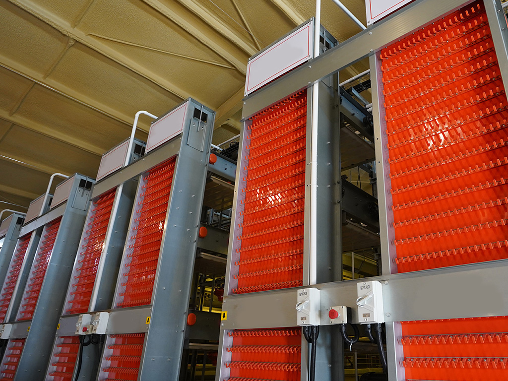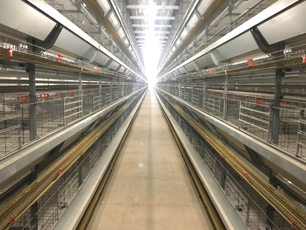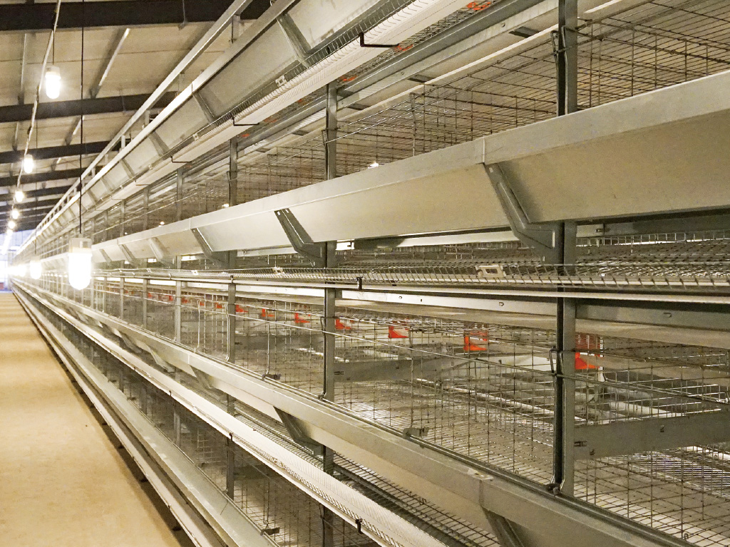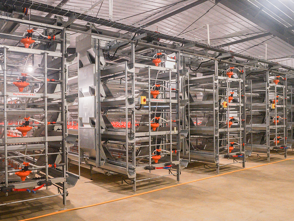- Collection trays are configured to collect soft-shelled eggs and dirt each layer