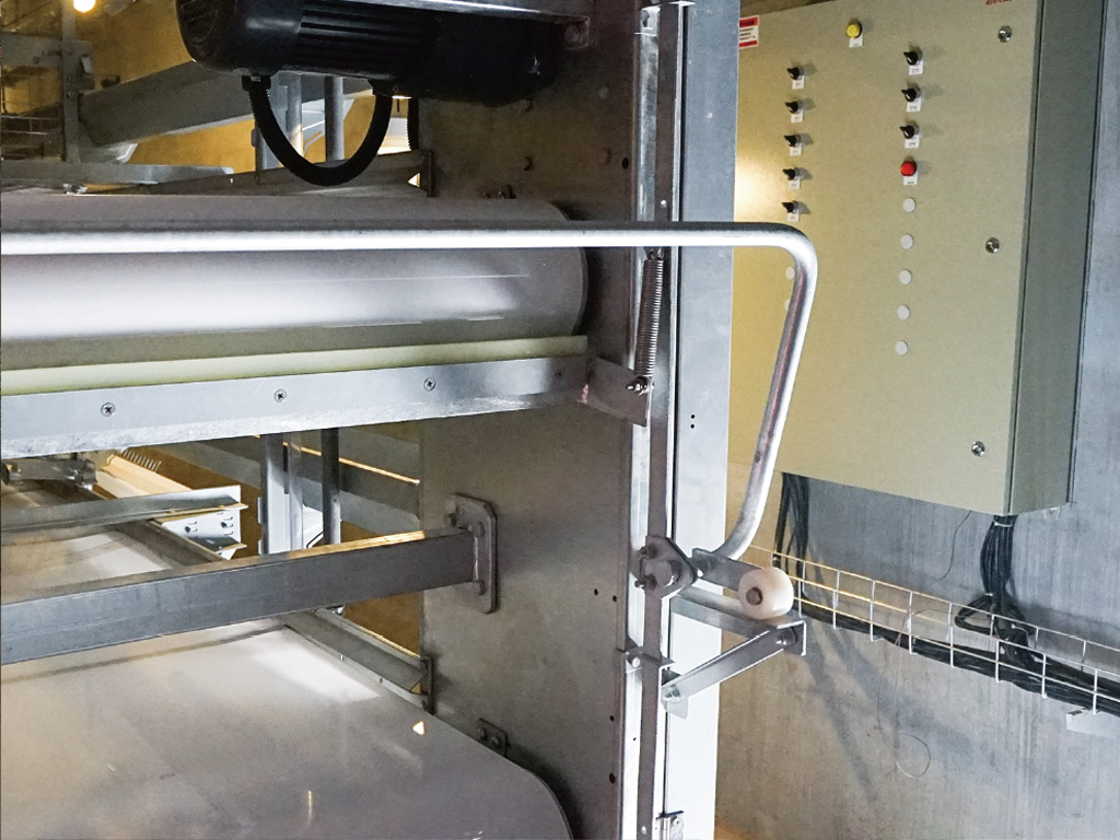 - Egg protective damper: It prevents the chickens pecking eggs, and avoids chicken manure falling on the trough on bottom layer;